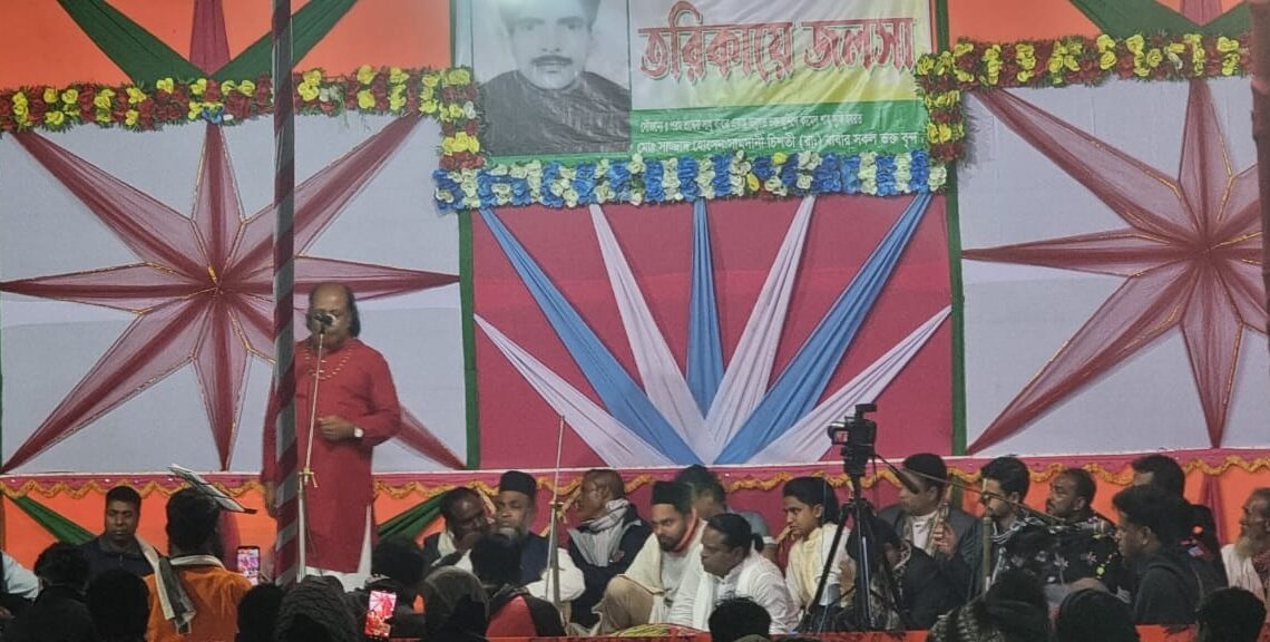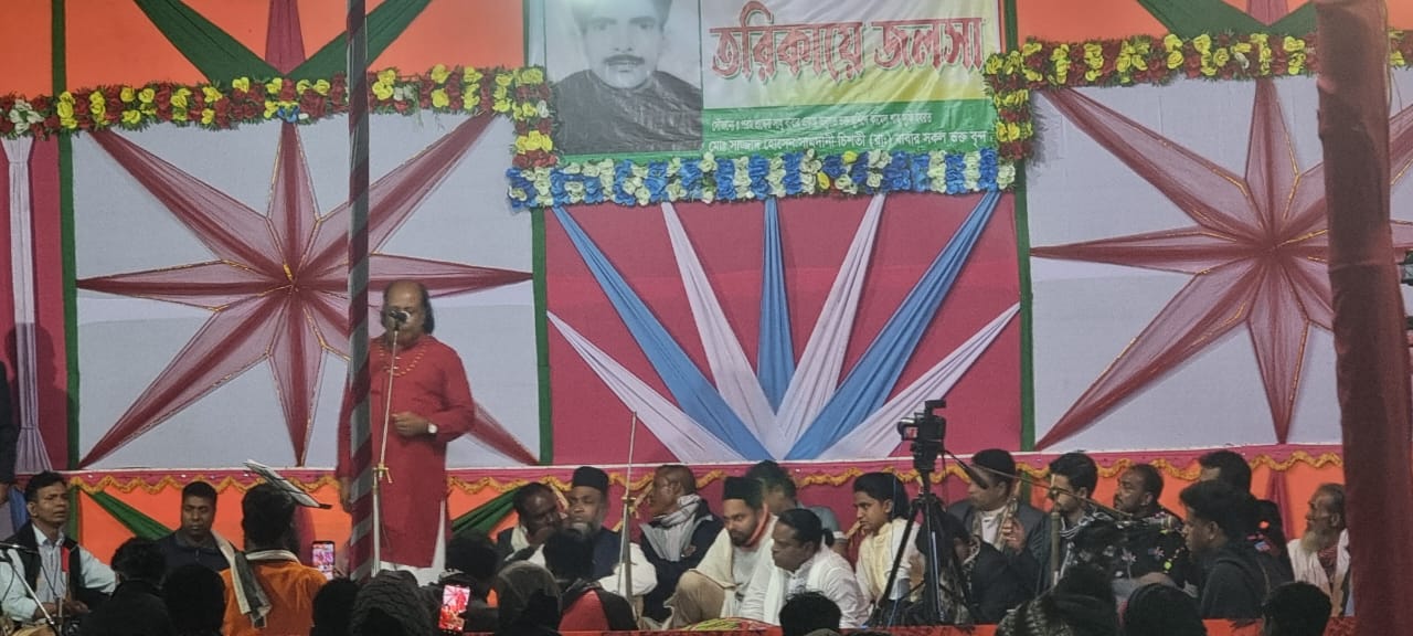 তরিকায়ে জলসায় বাউল গান পরিবেশন করে ফকির আবুল সরকার, শরীয়ত সরকার সহ স্থানীয় শিল্পীবৃন্দ।