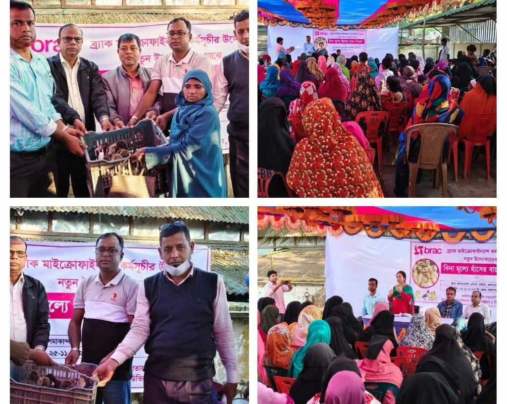 নেত্রকোনা জেলার কলমাকান্দা উপজেলায় ব্র্যাক মাইক্রোফাইন্যান্স কর্মসূচির উদ্যোগে দাবি ও বিসিইউপি (BCUP) কর্মসূচির সদস্যদের মাঝে বিনামূল্যে হাঁসের বাচ্চা বিতরণ করা হয়েছে।
