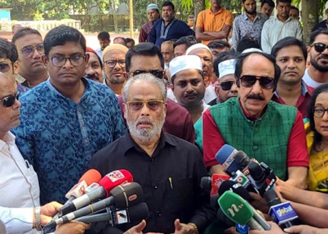 সাংবাদিকদের প্রশ্নের জবাবে জাতীয় পার্টির চেয়ারম্যান গোলাম মোহাম্মদ (জিএম) কাদের
