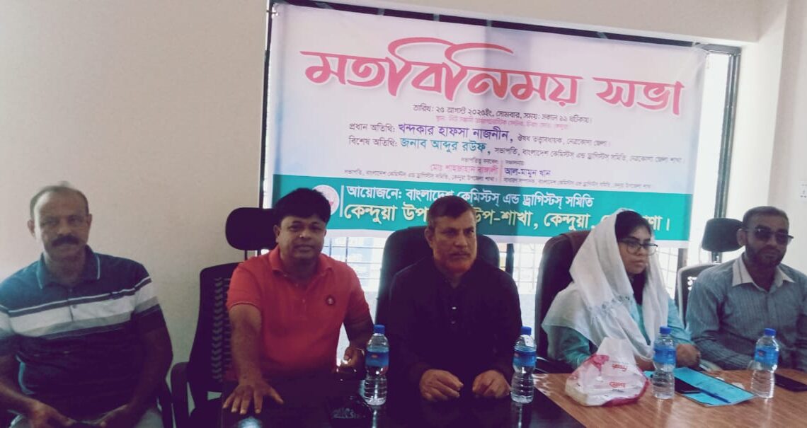বাংলাদেশ কেমিস্টস্ অ্যান্ড ড্রাগিস্টস্ সমিতি (বিসিডিএস), কেন্দুয়া উপজেলা শাখার উদ্যোগে এক মতবিনিময় সভা অনুষ্ঠিত হয়েছে। সোমবার (২৫ আগস্ট) সকাল ১১টায় কেন্দুয়া পৌরসভার চিরাং মোড়ে নিউ সন্ধানী ডায়াগনস্টিক সেন্টারে এ সভার আয়োজন করা হয়।