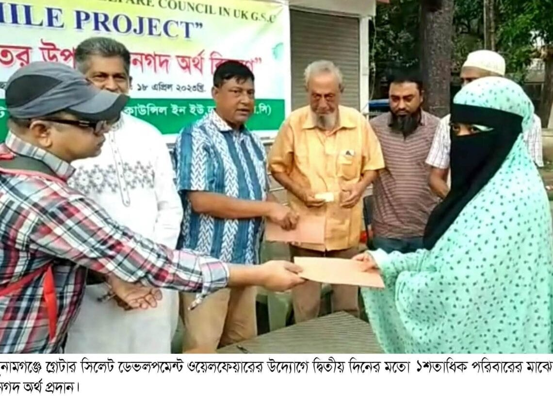সুনামগঞ্জে গ্রেটার সিলেট ডেভলপমেনট এন্ড ওয়েলফেয়ার কাউন্সিল ইন ইউকে, জিএসসি, সুনামগঞ্জ জেলা শাখার উদ্েযাগে পবিত্র ঈদুল ফিতর উপলক্ষে দ্বিতীয় দিনের মতো ১ শতাধিক অসহায় পরিবারের মাঝে নগদ অর্থ বিতরণ করা হয়েছে।