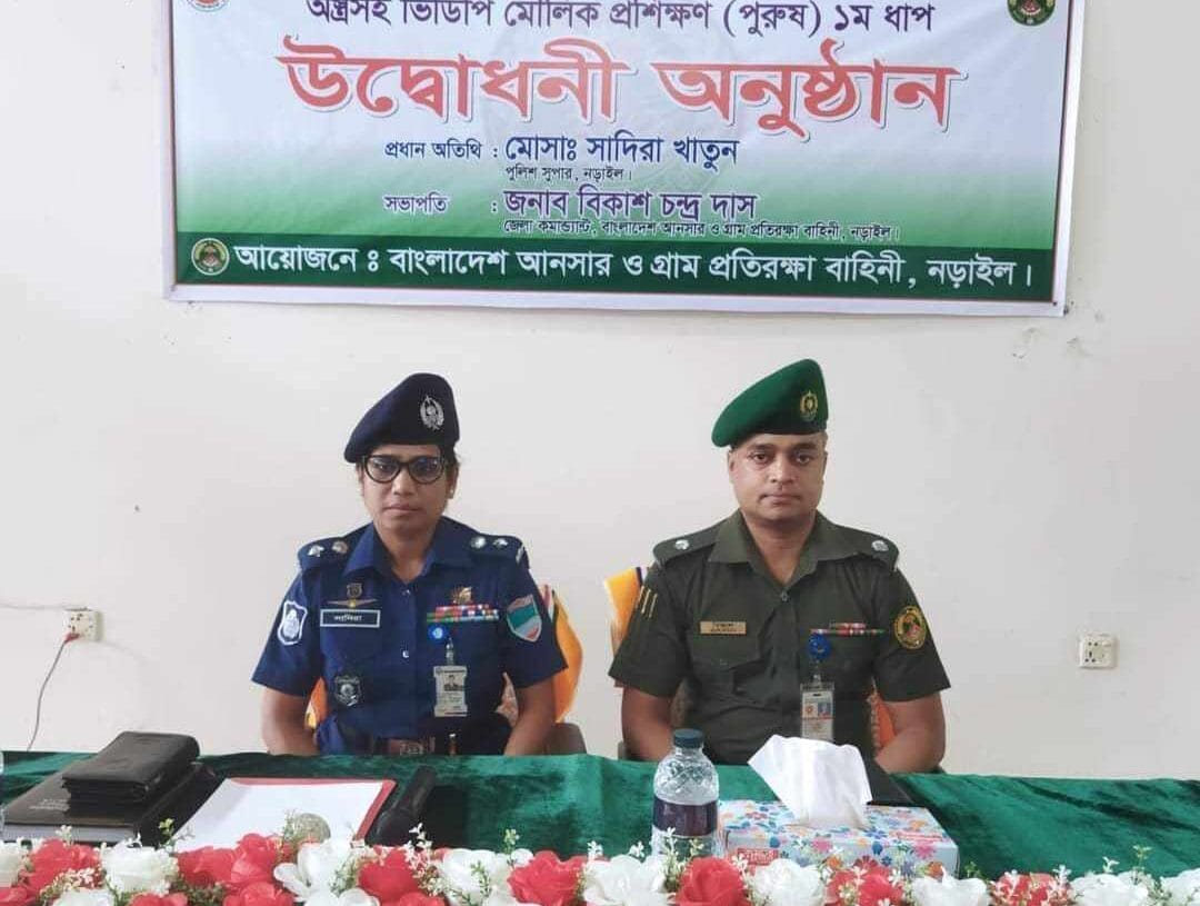 অনুষ্ঠানে প্রধান অতিথি হিসেবে উপস্থিত থেকে উক্ত প্রশিক্ষণ কর্মসূচির শুভ উদ্বোধন ঘোষণা করেন মোসাঃ সাদিরা খাতুন, পুলিশ সুপার, নড়াইল। অনুষ্ঠানের সভাপতিত্ব করেন জনাব বিকাশ চন্দ্র দাস, জেলা কমান্ড্যান্ট, বাংলাদেশ আনসার ও গ্রাম প্রতিরক্ষা বাহিনী, নড়াইল।