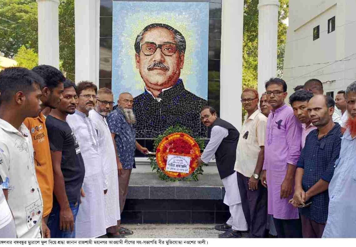 রাণীনগরে বঙ্গবন্ধুর ম্যুরালে মুক্তিযোদ্ধা নওশের আলীর শ্রদ্ধা