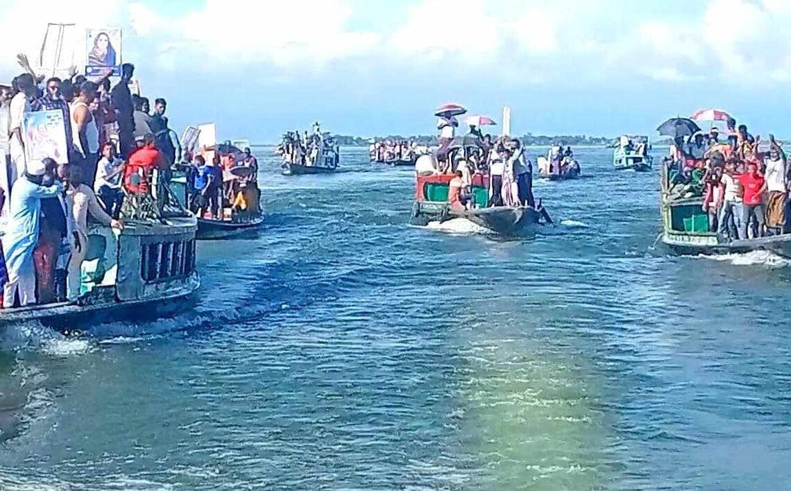 জাতির পিতার কন্যা প্রধানমন্ত্রী শেখ হাসিনার সরকারের নানামুখী উন্নয়ন কর্মকান্ড প্রচার,আন্তর্জাতিক ষড়যন্ত্র ও চক্রান্ত প্রতিহত করা এবং আগামী দ্বাদশ জাতীয় সংসদ নির্বাচনে আওয়ামীলীগ মনোনীত প্রার্থীদের বিজয়ী করার লক্ষ্যে হাওরের জেলা সুনামগঞ্জে ব্যতিক্রম প্রায় ৫শতাধিক নৌকার বহর নিয়ে নদীপথে ৪০ কিলোঃমিটার পথে বিশাল নৌ-যাত্রা অনুষ্ঠিত হয়েছে।