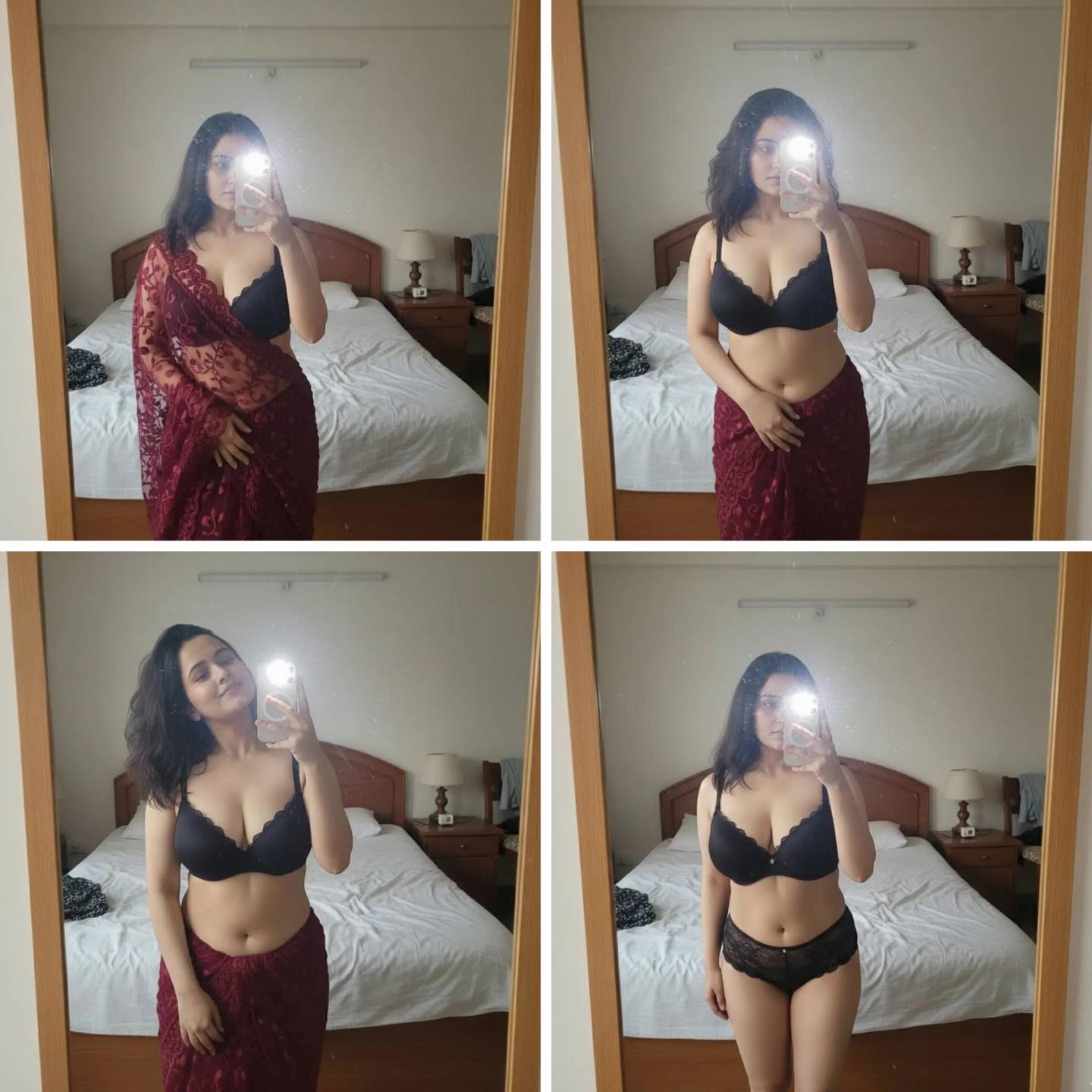 এই ছবিতে দেখা যায়, এক নারী মেরুন রঙের শাড়িতে নিজেকে সাজিয়েছেন, যার আড়ালে দৃশ্যমান তার কালো রঙের ব্রা এবং প্যান্টি। আয়নার সামনে তোলা এই সেলফিটি দ্রুত ছড়িয়ে পড়ে এবং ফ্যাশন সচেতন মানুষদের মধ্যে ব্যাপক আলোচনার সৃষ্টি করে।