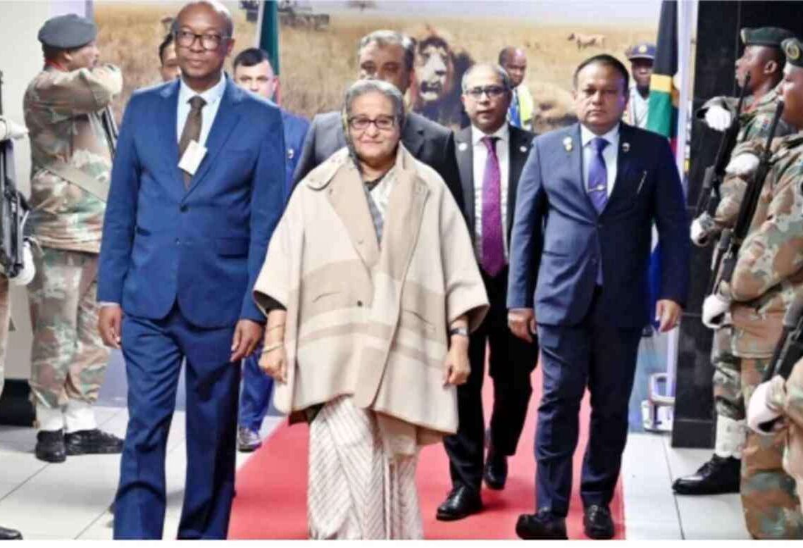 গত ২২ আগস্ট রাতে জোহানেসবার্গে পৌঁছান প্রধানমন্ত্রী।