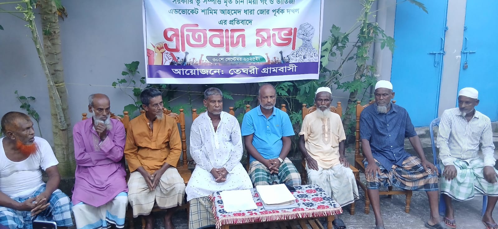 ৩০ সেপ্টেম্বর(মঙ্গলবার) বাদ আসর গ্রামবাসীর ব্যানারে গ্রামের মুরব্বী সমুজ আলীর সভাপতিত্বে এই প্রতিবাদ সভা অনুষ্ঠিত হয়।