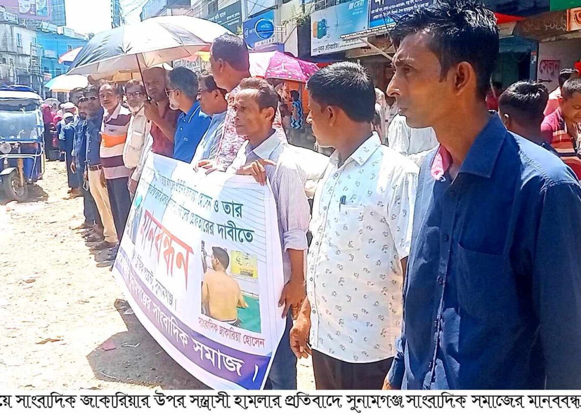 বুধবার সকাল সাড়ে ১১টায় সুনামগঞ্জ সাংবাদিক সমাজের আয়োজনে শহরের ট্রাফিক পয়েন্টে এ মানববন্ধন অনুষ্ঠিত হয়।