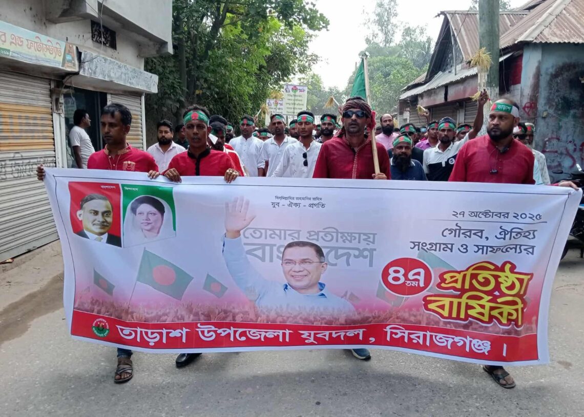 এই মহৎ আদর্শকে ধারণ করে সিরাজগঞ্জের তাড়াশ উপজেলা যুবদল নানা আয়োজনে উদযাপন করে সংগঠনের ৪৭তম প্রতিষ্ঠাবার্ষিকী। শনিবার (২৭ অক্টোবর) সকাল ১০টায় তাড়াশ মহুরী অফিস থেকে এক বর্ণাঢ্য র্যালি বের হয়ে পৌর শহরের প্রধান সড়কগুলো প্রদক্ষিণ শেষে পুনরায় মহুরী অফিস চত্বরে এসে শেষ হয়।