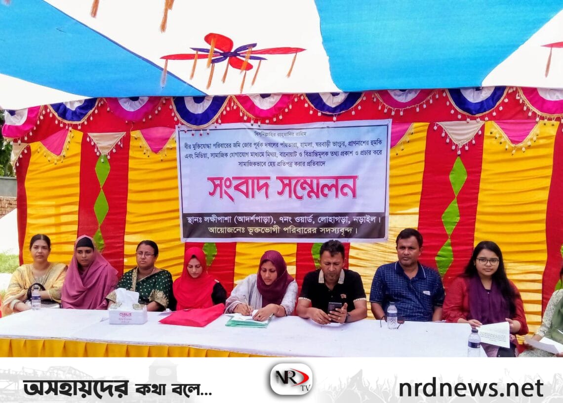 নড়াইলের লোহাগড়া উপজেলার লক্ষীপাশা গ্ৰামের আদর্শ পাড়া ৭ নং ওয়ার্ডের জমি জমা বিরোধের জের ধরে, জোর পূর্বক জমি দখল করে রাস্তা নির্মাণ, ঘর দরজা ও ইটের দেয়াল ভাংচুর, সর্বোপরি জীবননাশের হুমকির প্রতিবাদে সংবাদ সম্মেলন অনুষ্ঠিত হয়েছে।