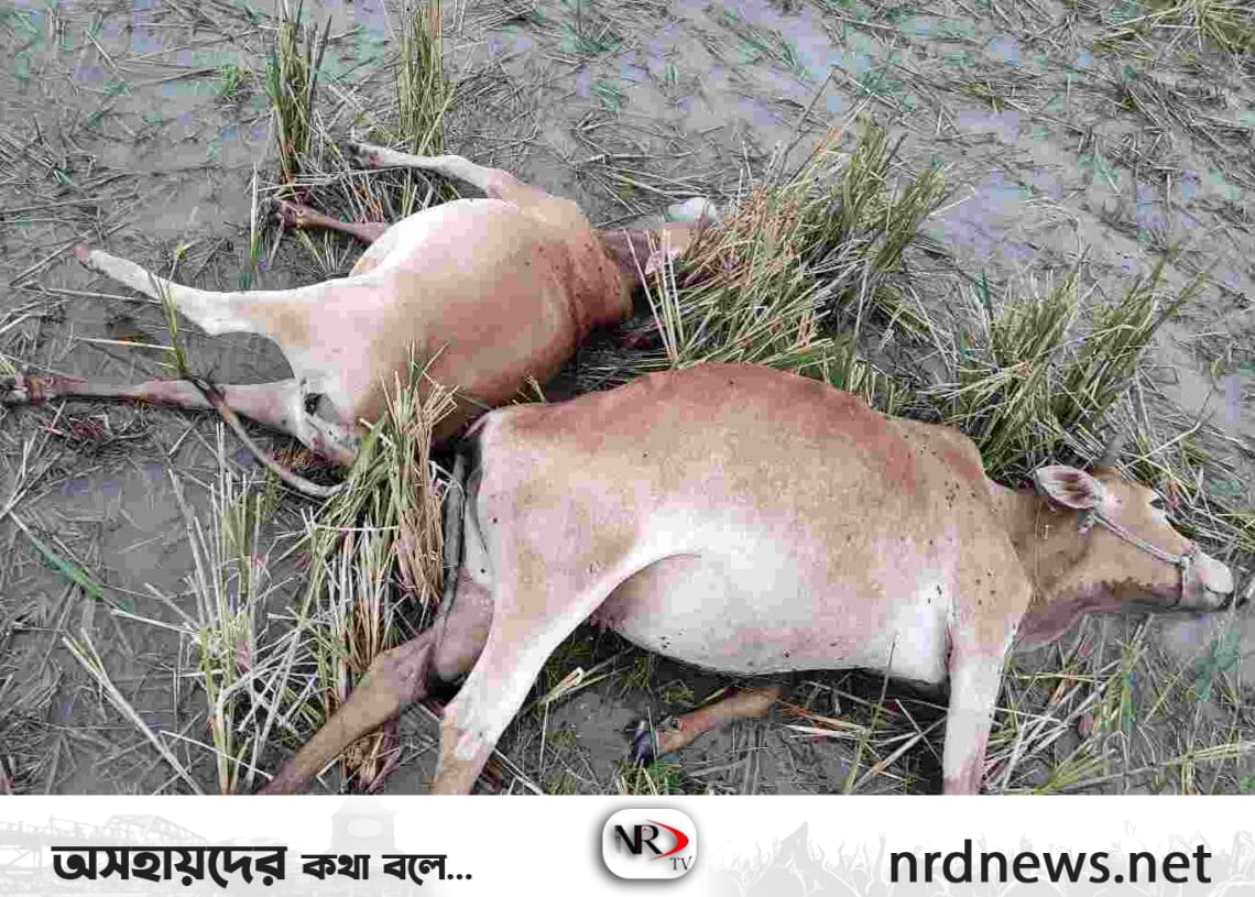 দিরাই সুনামগঞ্জ প্রতিনিধি ঃ সুনামগঞ্জের দিরাইয়ে বজ্রপাতে এক দরিদ্র দিনমজুরের তিনটি গবাদিপশুর মৃত্যু হয়েছে। মঙ্গলবার সকাল ৯টার দিকে উপজেলার করিমপুর ইউনিয়নের মকসুদপুর গ্রামে এ ঘটনা ঘটে। দরিদ্র ওই দিনমজুর মকসুদপুর গ্রামের হরি দাস জানিয়েছেন, অন্যের জমিতে দিনমজুরী ও গবাদিপশু পালন করে সংসার চলে তার। মঙ্গলবার সকালে গ্রাম সংলগ্ন হাওরে গরুগুলোকে ঘাস খেতে দিয়ে আসেন। বেলা ৯টার দিকে বজ্রপাতে তার তিনটি গবাদিপশু ঘটনাস্থলেই মারা যায়। এ ঘটনায় সম্বল হারিয়ে দরিদ্র দিনমজুর হরি দাস বাকরূদ্ধ। গ্রামের লোকজন ক্ষতিগ্রস্ত হরি দাসকে সরকারি সহায়তা দেয়ার দাবি জানিয়েছেন।