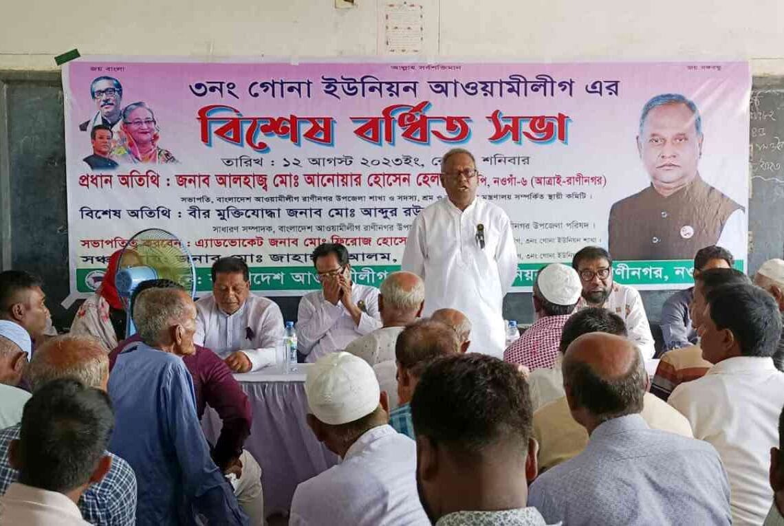 গোনা ইউনিয়ন আওয়ামী লীগের সভাপতি এ্যাডভোকেট ফিরোজ হোসেনের সভাপতিত্বে ও সাধারণ সম্পাদক জাহাঙ্গীর আলমের সঞ্চালনায় সভায় প্রধান অতিথি হিসাবে বক্তব্য রাখেন, নওগাঁ-৬ (রাণীনগর-আত্রাই) আসনের এমপি আনোয়ার হোসেন হেলাল। বিশেষ অতিথি হিসাবে বক্তব্য দেন, উপজেলা আওয়ামী লীগের সাধারণ সম্পাদক বীর মুক্তিযোদ্ধা আব্দুর রউফ দুলু।