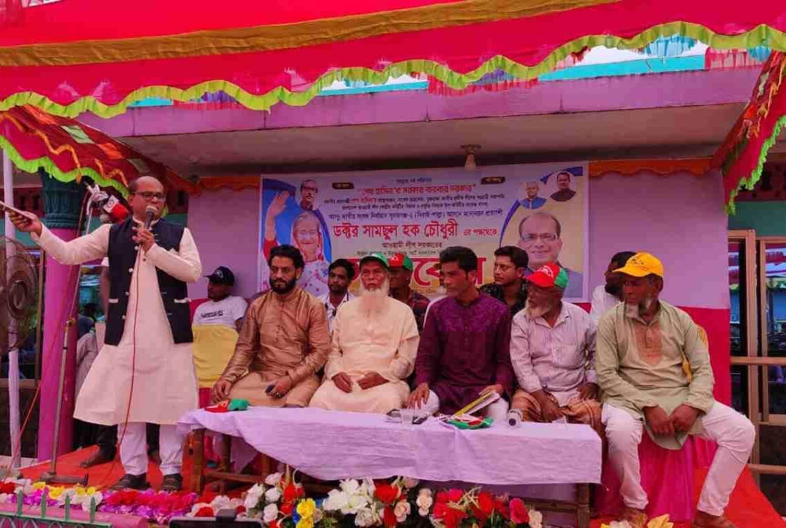 সুনামগঞ্জ-০২ (দিরাই-শাল্লা) আসনে আওয়ামীলীগের মনোনয়ন প্রত্যাশী, কেন্দ্রীয় আওয়ামীলীগের বিজ্ঞান ও প্রযুক্তি বিষয়ক উপ-কমিটির সাবেক সদস্য, যুক্তরাজ্য শ্রমিক লীগের সভাপতি ড. সামছুল হক চৌধুরী বলেছেন, বাংলাদেশের জনগণ চায় প্রধানমন্ত্রী জননেত্রী শেখ হাসিনা আবার ক্ষমতায় আসুক। কারণ উনার নেতৃত্বে বাংলাদেশ উন্নয়ন অগ্রগতিতে এগিয়ে গেছে। বিশ্বের দরবারে বাংলাদেশ মাথা উঁচু করে দাঁড়িয়েছে। উনার নেতৃত্বে বাংলাদেশ ডিজিটালাইজেশন হয়েছে। বাংলাদেশ স্মার্ট বাংলাদেশের দিকে এগিয়ে যাচ্ছে। প্রধানমন্ত্রী পদ্মা সেতু, মেট্রোরেল, বঙ্গবন্ধু স্যাটেলাইট, কর্ণফুলি টানেলসহ অসংখ্য মেগা উন্নয়নের দৃষ্টান্ত স্থাপন করেছেন। তিনি আমাদের সুনামগঞ্জের রুপ পাল্টে দিয়েছেন। মেডিকেল বিশ্ববিদ্যালয়, বিজ্ঞান ও প্রযুক্তি বিশ্ববিদ্যালয়, টেক্সটাইল কলেজ হয়েছে। রেল লাইন, কৃষি ইন্সটিটিউট হচ্ছে। রোজ