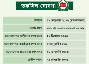 তফসিল ঘোষণার মধ্য দিয়ে দেশের রাজনৈতিক অঙ্গনে নির্বাচনী উত্তাপ আরও বৃদ্ধি পেয়েছে। বিভিন্ন রাজনৈতিক দল এখন মাঠপর্যায়ে প্রার্থী চূড়ান্ত করা ও প্রচারণার প্রস্তুতিতে ব্যস্ত হয়ে পড়েছে।