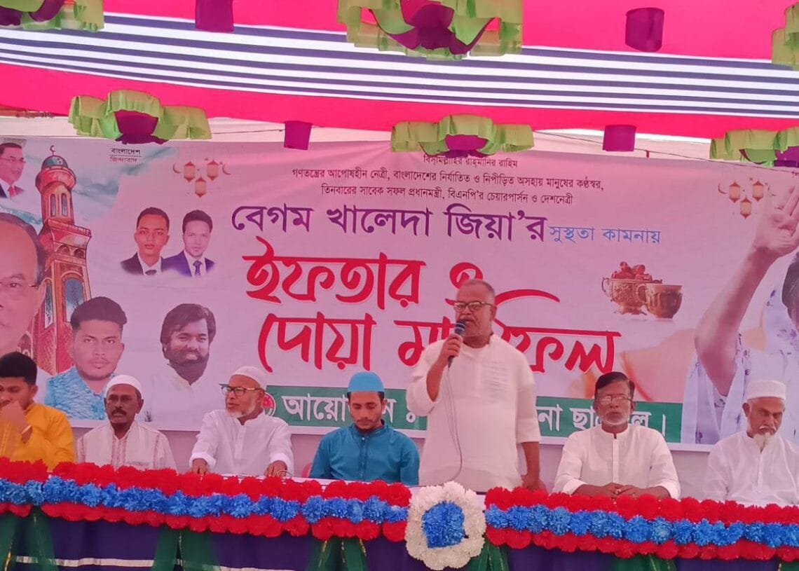 পরে ইফতার ও দোয়া মাহফিলে বেগম খালেদা জিয়া ও তার পরিবারের জন্য বিশেষ দোয়া কমনা ও নেতাকর্মীদের মাঝে ইফতার বিতরণ করা হয়।