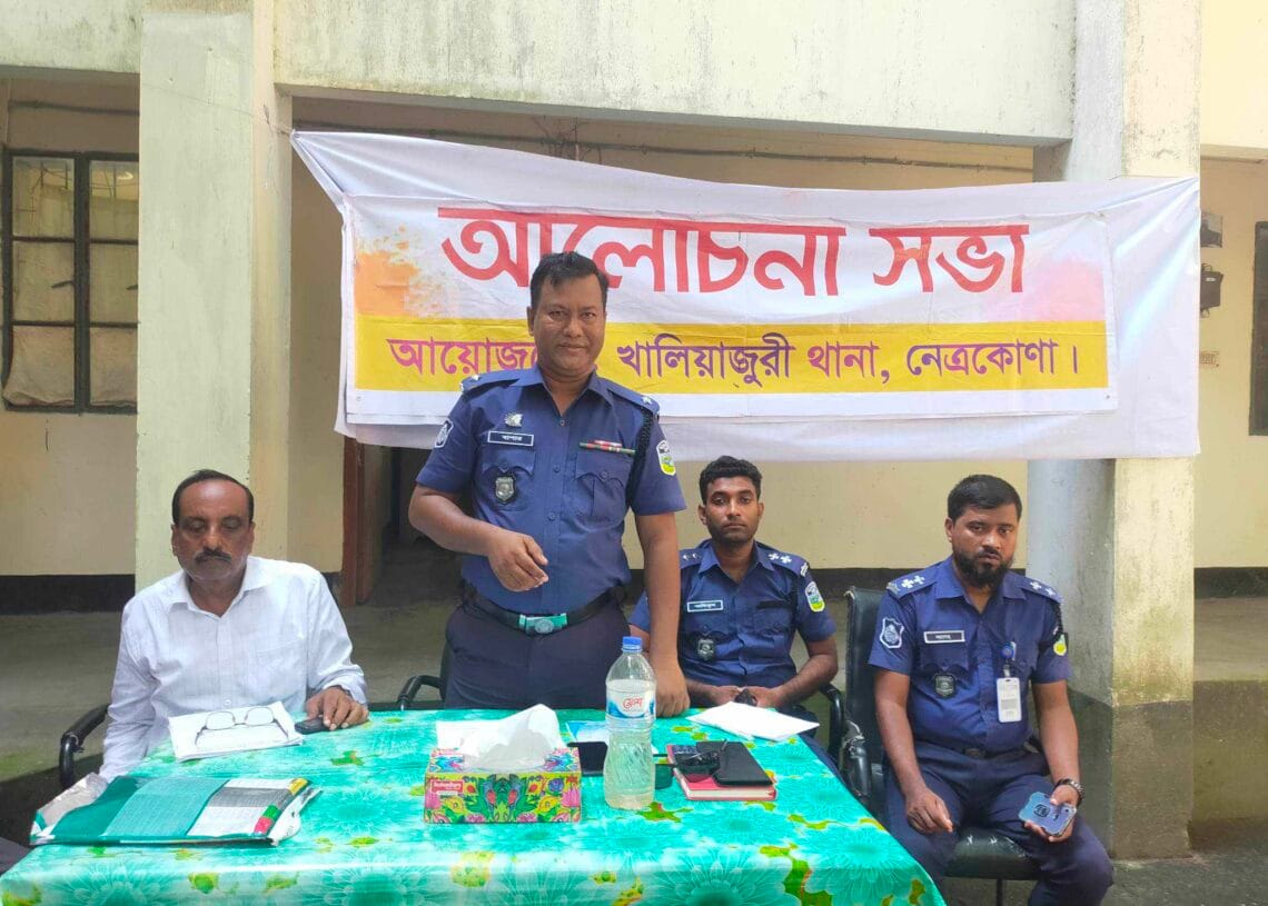 খালিয়াজুরী থানার ভারপ্রাপ্ত কর্মকর্তা (ওসি) খায়রুল বাশারের সভাপতিত্বে ও উপ-পরিদর্শক আকিকুর রহমানের সঞ্চালনায় অনুষ্ঠানে